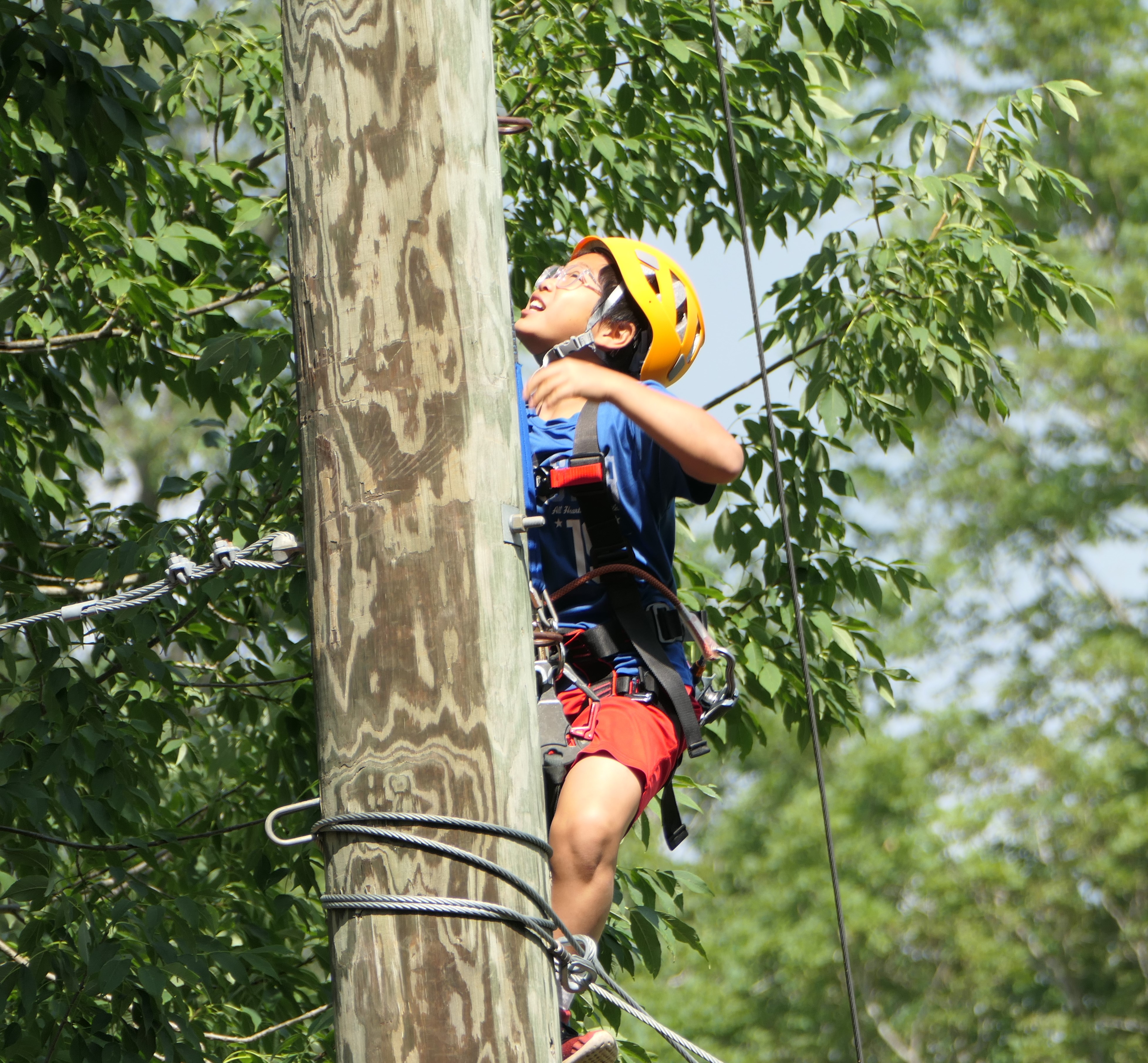 Greylock has two outstanding climbing walls on its facility. One, for our youngest boys, is two-sided and is 40 feet in height. Our more advanced wall is four-sided and 70 feet in height. Each side of each wall has a different pattern that is designed to be sequential in difficulty so boys learn and progress. All boys who participate in this program are properly harnessed and all instructors are certified in safety and skill procedures. The climbing wall is among the camp’s most popular adventure activities.