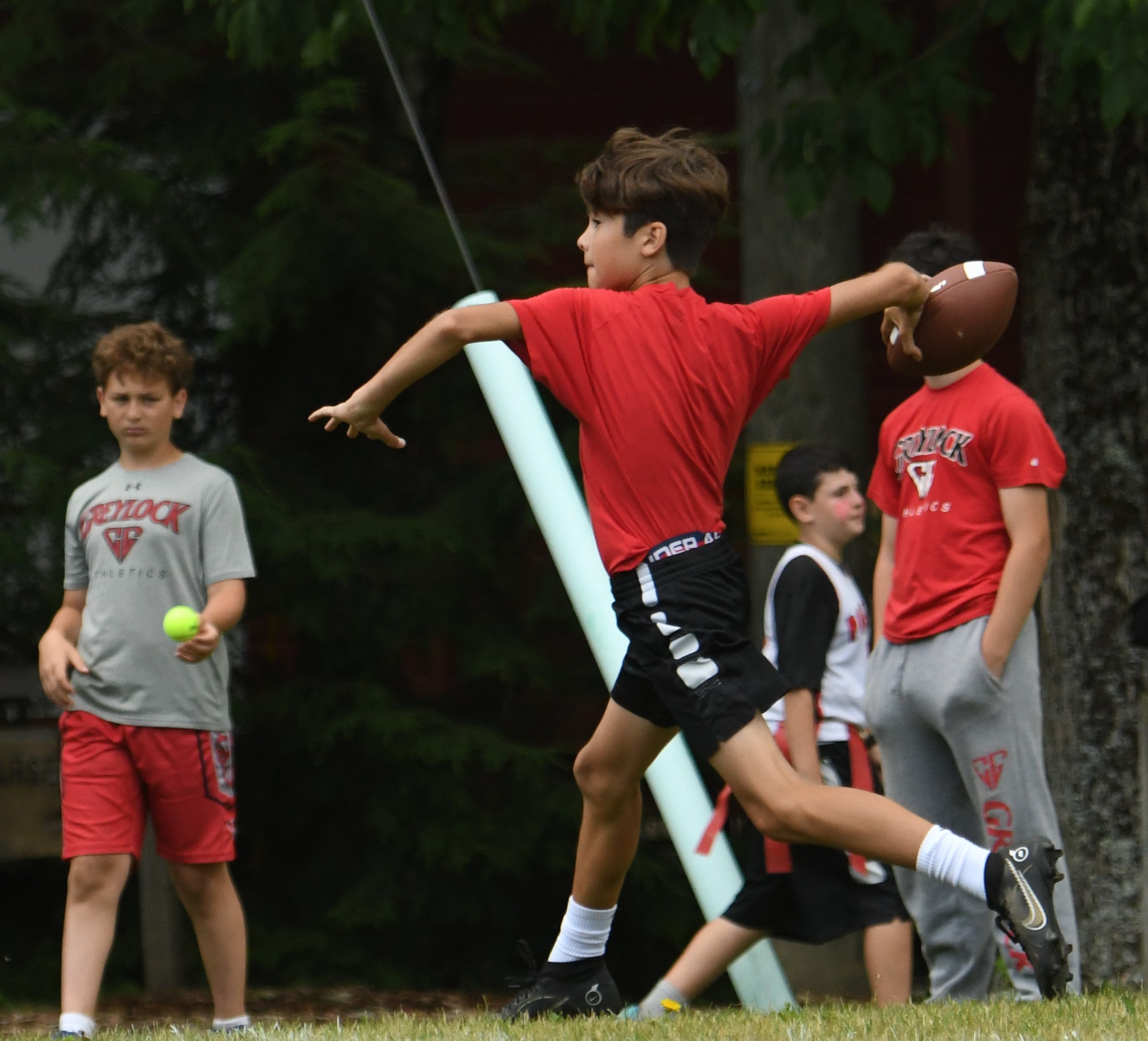 Greylock has an outstanding flag football facility that includes two 100 yard fields, one of which has NFL-size uprights. While we do not play any form of tackle football, our flag football program uses the common seven-on-seven format that tackle football programs use in their off-season.