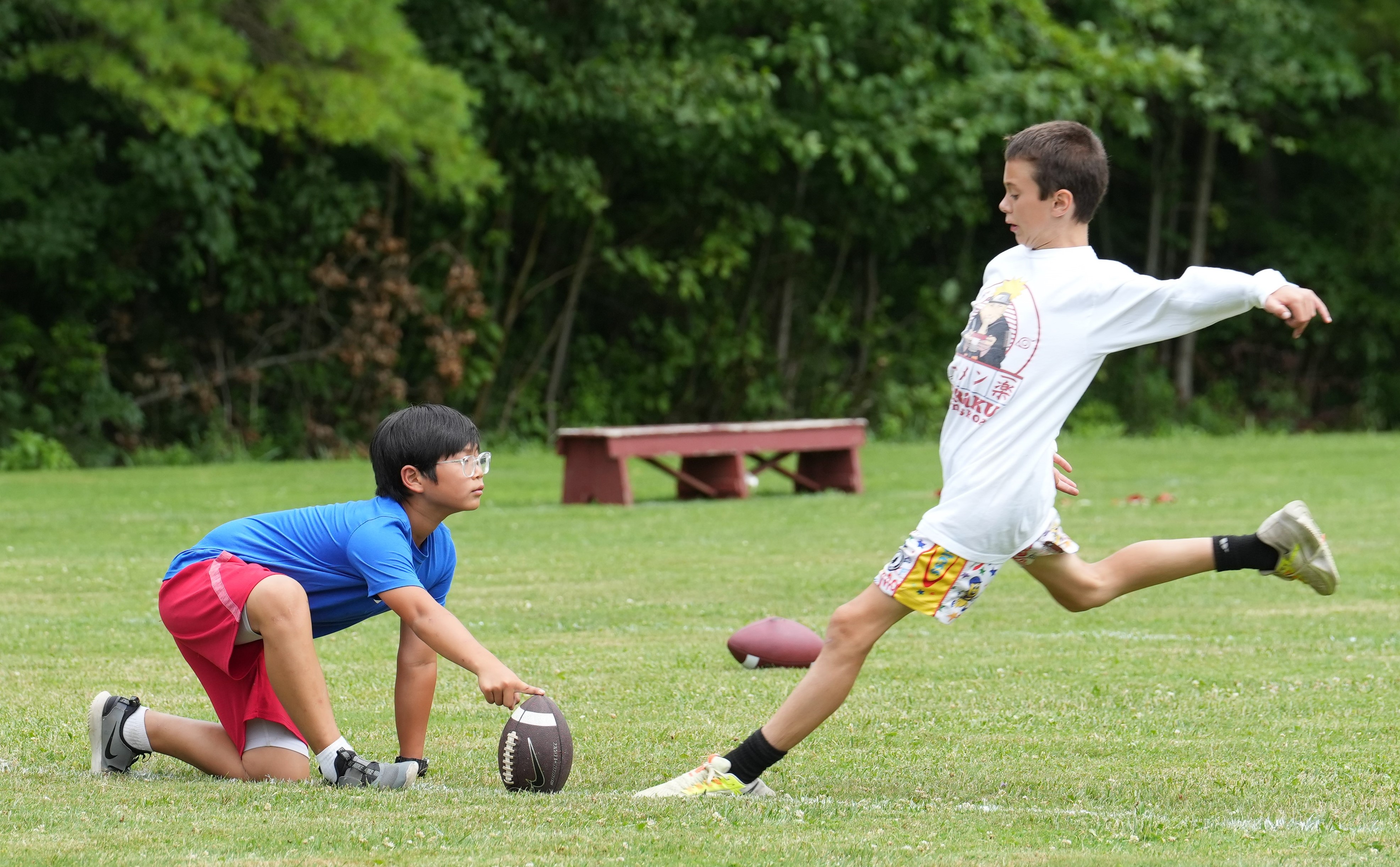 Boys are taught skills of all positions including quarterbacking, receiving, and all forms of defense. Games are closely refereed to maintain safety. We employ rules that maximize participation that include making all players eligible for receptions. In 2021, the leadership of our program included two former NFL players.