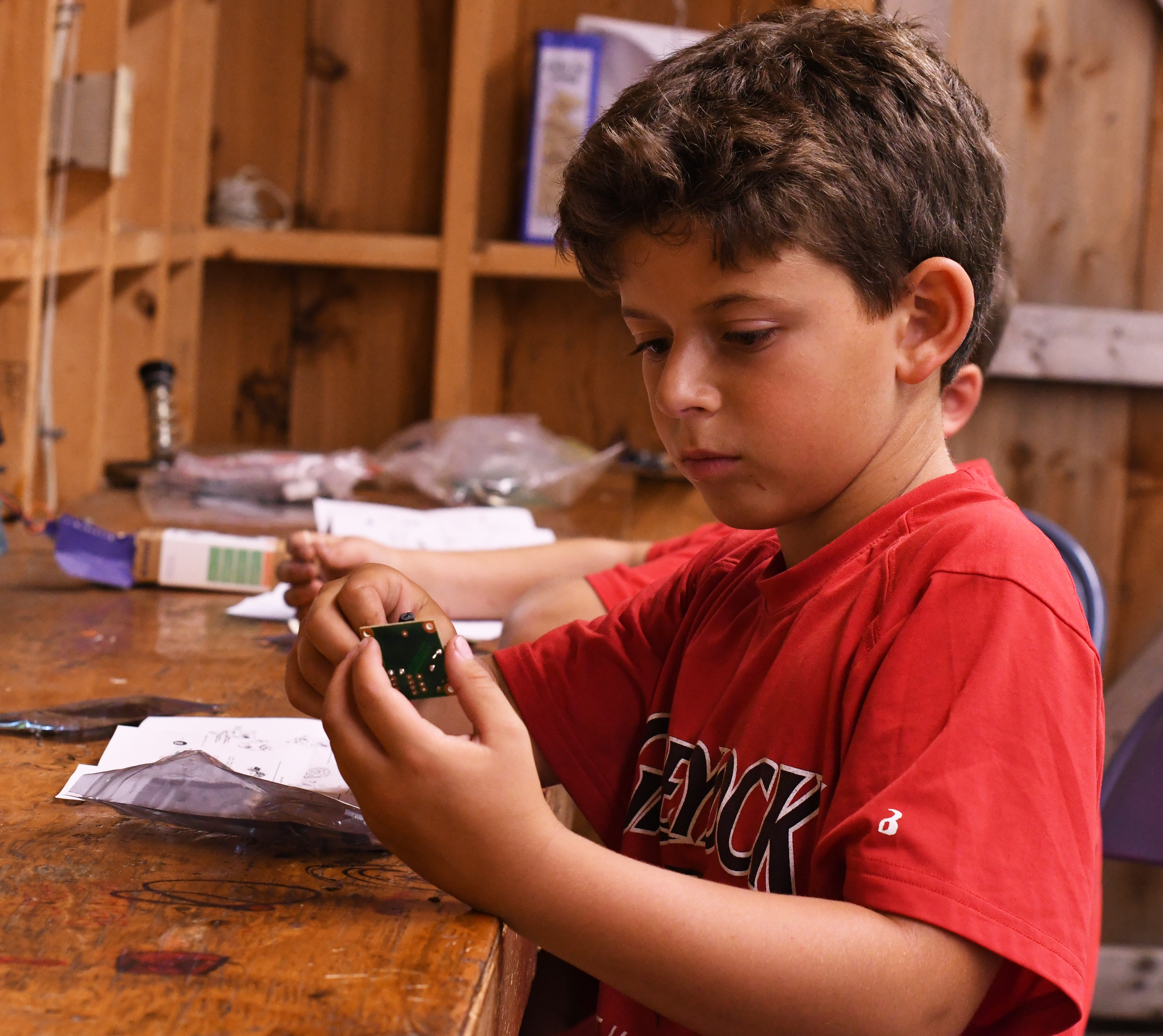 Greylock seeks to offer a wide variety of experiences to our campers. One of them is our radio and electronics program. Boys learn small motor skills and basic circuitry by building small electronic kits with soldering irons.