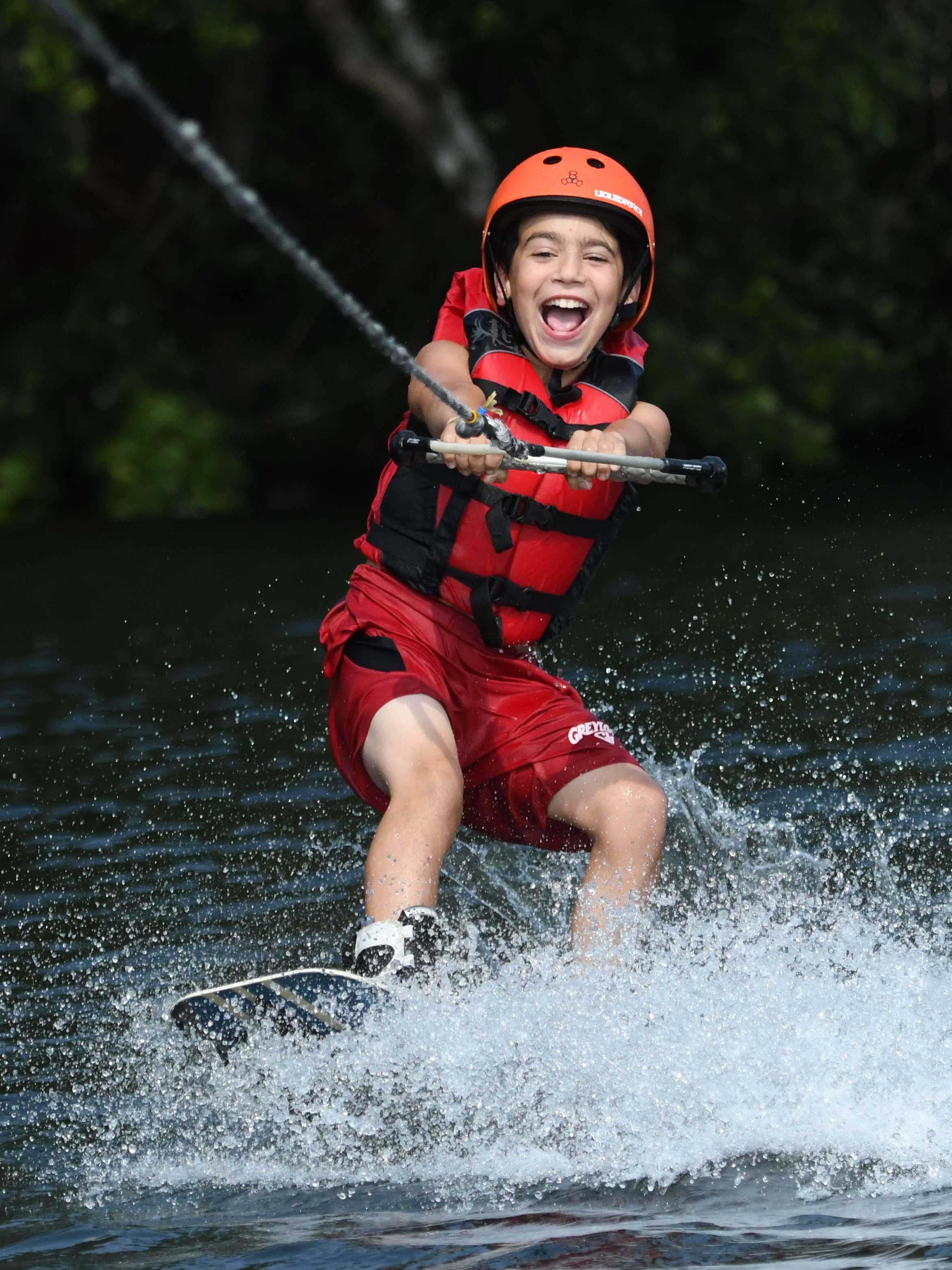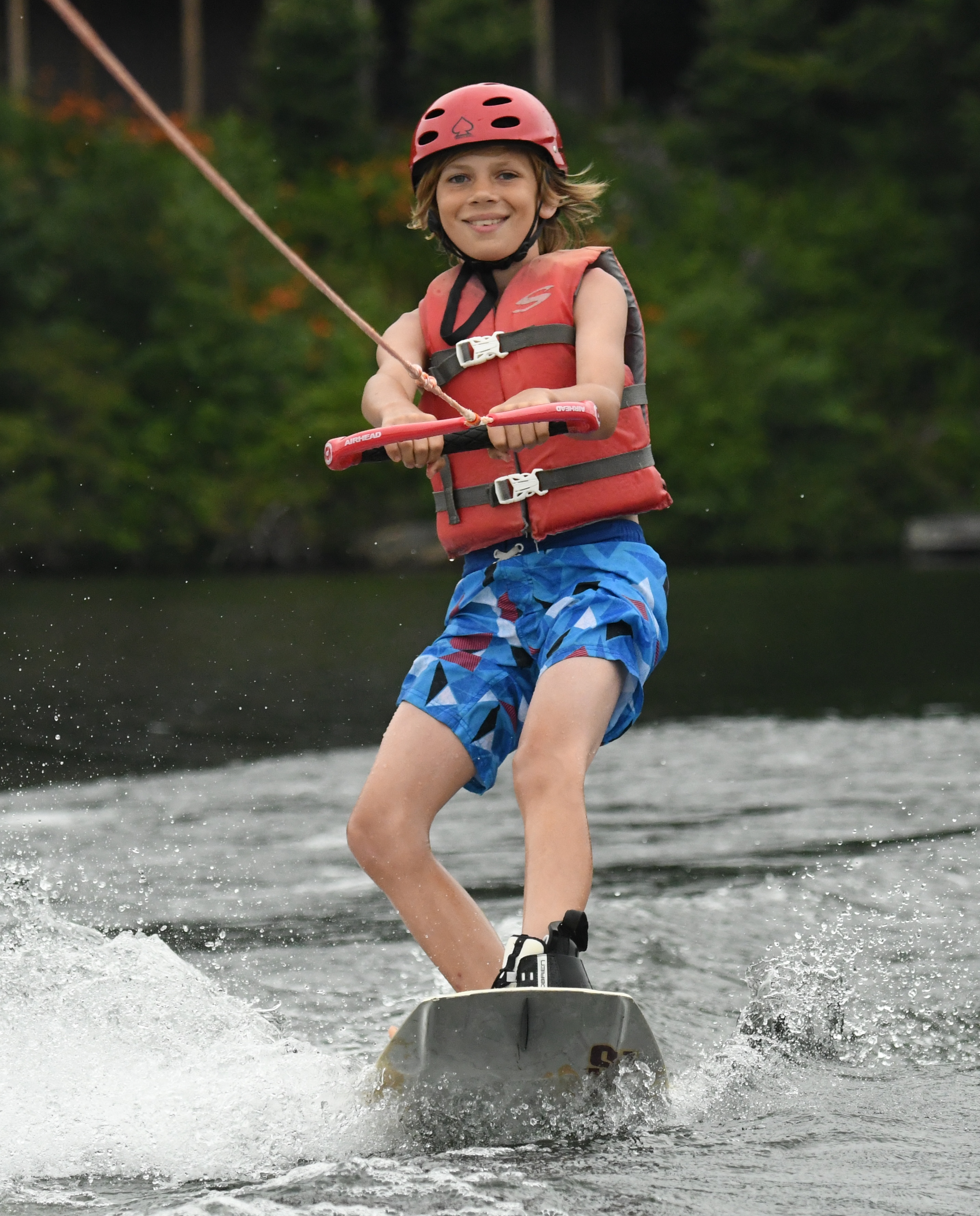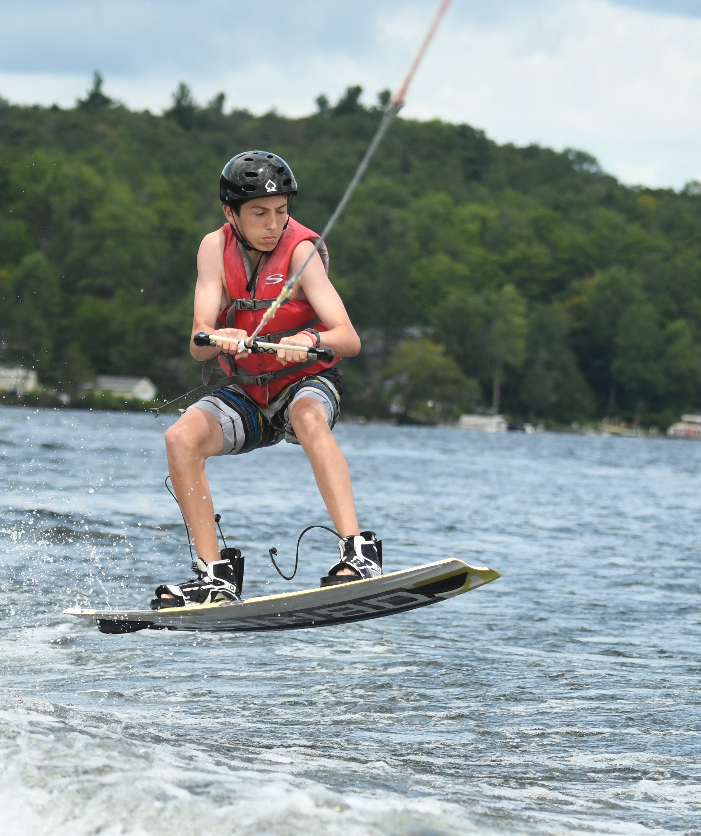 Greylock has an extensive water skiing and boarding program on Center Lake. Our fleet includes four motor boats that are some of the best and most expensive in camping. Members of our staff take special courses to drive in a way that promotes learning and do so in the safest possible manner. Our program is run by Mike Lester who has 12 summers of experience at Greylock. Boys often begin by learning knee boarding skills. As they grow more comfortable, water skiing and wakeboarding programs are introduced. Of course, nothing is more fun than tubing with your buddies on Center Lake!
